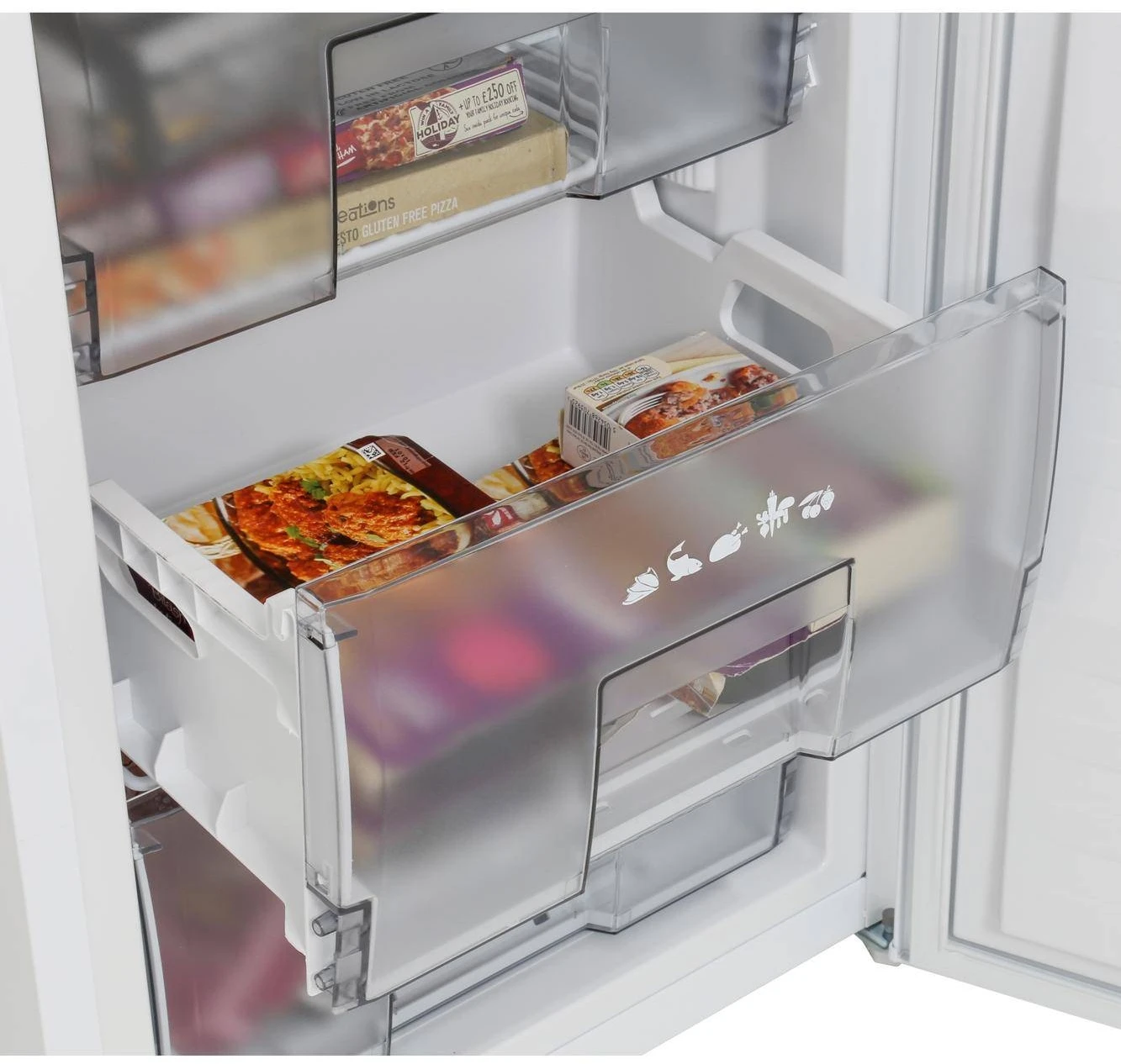 TheĀ 75 litre net volumeĀ is perfect for keeping all of your food fresh and delicious, and the 3 drawers (2 deep and 1 shallow) reduce energy loss and make it easy to organise different sized items. They are transparent, which is handy when trying to find a particular item in a hurry and also reduces unnecessary drawer opening, further reducing unwanted temperature change.