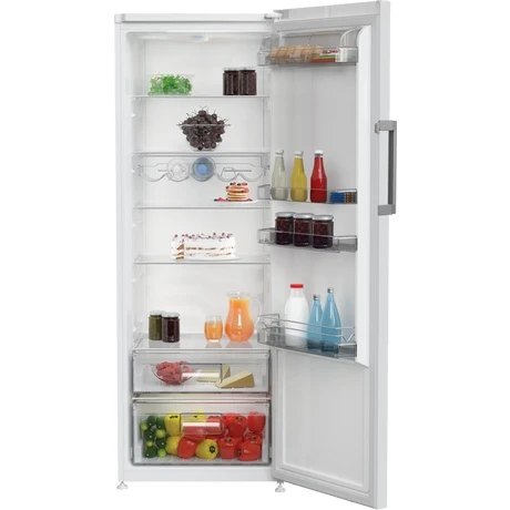 This tall larder fridge from Blomberg has a total net capacity of 367 litres. This is plenty of room to store all the familys groceries with ease. It has five glass shelves and a large salad crisper for keeping all your fruit and vegetables fresh and crunchy. And, the included chrome wire shelf is the perfect place for bottles of wine and fizzy drinks.