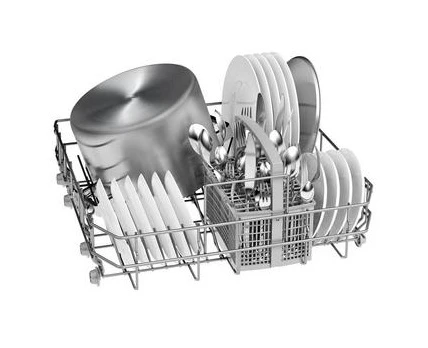 Inside the dishwasher, the top basket is height-adjustable, so you can alter it depending on the size of the items you need to wash. The elements in the bottom basket are foldable while the included cutlery basket provides added flexibility.