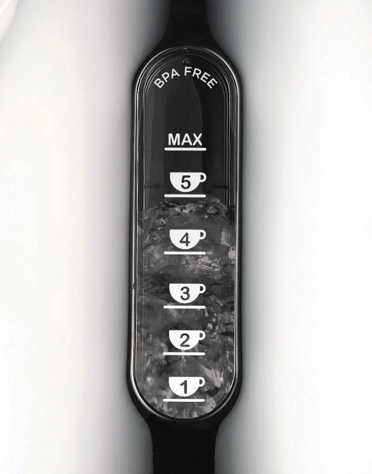 Dual Measuring Windows – The BPA free windows feature cup measures on one side perfect for tea drinkers! and the other side measure water in litres so you only need to boil the amount of water you need.Â