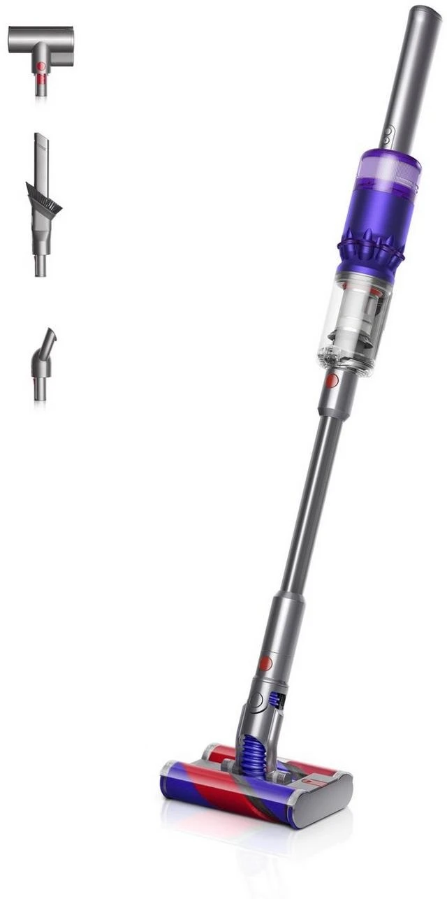 This cordless model comes with a crevice nozzle, upholstery brush, and dusting brush to tackle every task with ease. Tools are stored on the docking station, so theyll always be at hand when you need them. With two power settings, theres no job too big or too small for the Dyson Omni-Glide.