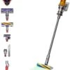 In Auto mode, Dyson DLS (Dynamic Load Sensor) technology inside the High Torque cleaner head monitors brush bar resistance 360 times a second, automatically adjusting power across floor types. This cleaner head also covers 25% more floor space with each sweep than the V15, for faster room cleaning. Plus, this model includes a Laser Slim Fluffy cleaner head which detects the particles you can’t normally see.