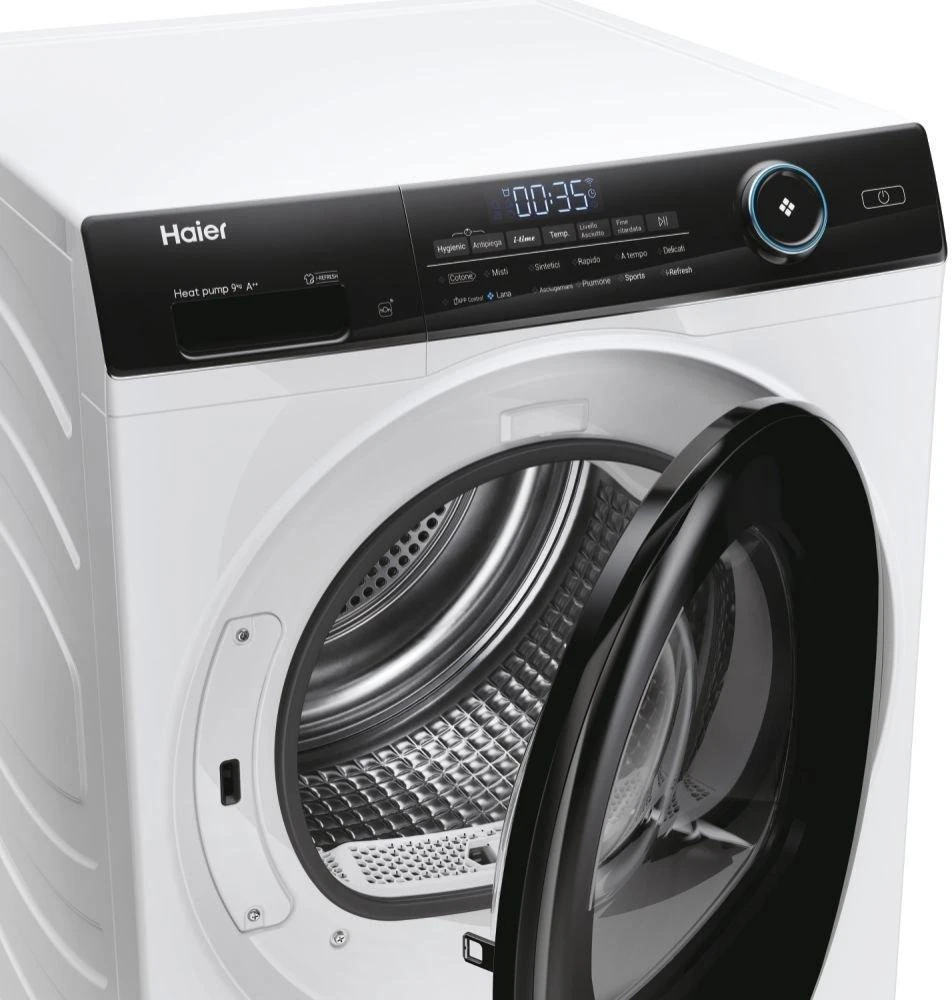 Coming in a classic white finish, the Haier HD90-A3959 heat pump tumble dryer will make light work of doing the laundry.Â
