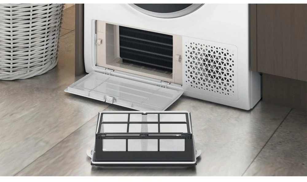 This Hotpoint heat pump tumble dryer has a maximum load capacity of 9kg.Â