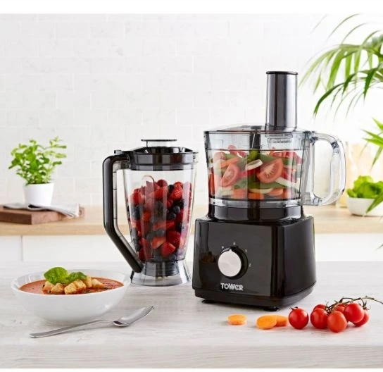 This Tower T18007BLK Food Processor and Blender uses a 750W motor for two ways of preparing your food, smoothies and more. With 2 variable speed settings and a handy pulse function, you can tackle a range of kitchen challenges.